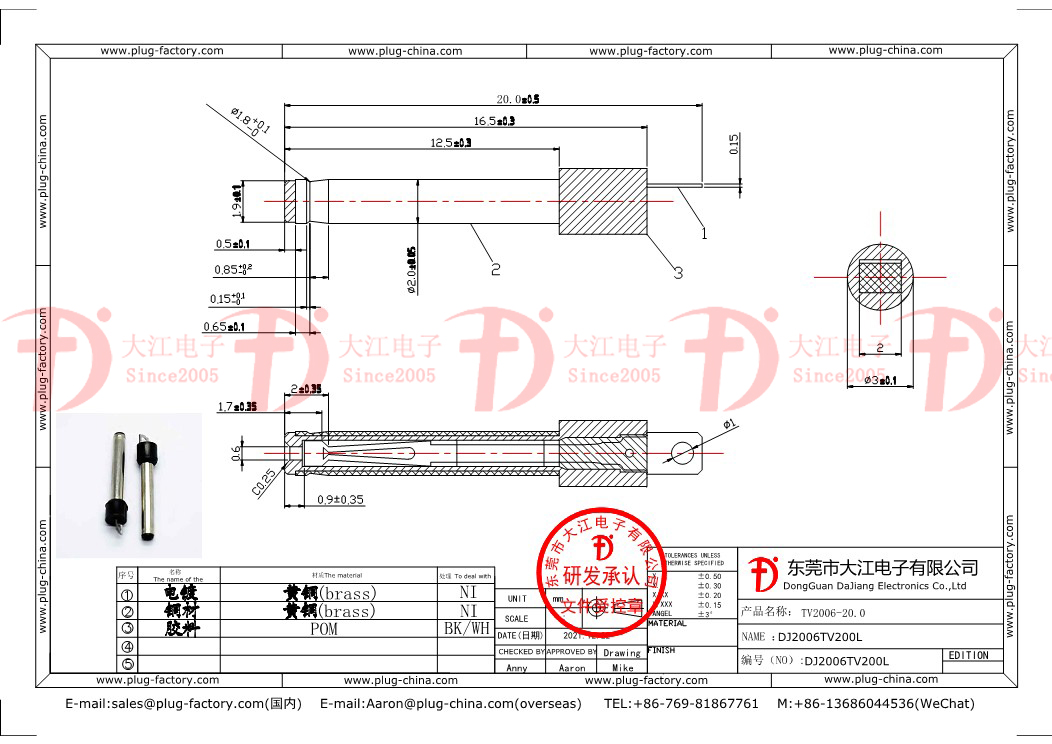 產品說明:音叉插頭-2006TV 20.3L 鍍鎳黑膠  防火膠料