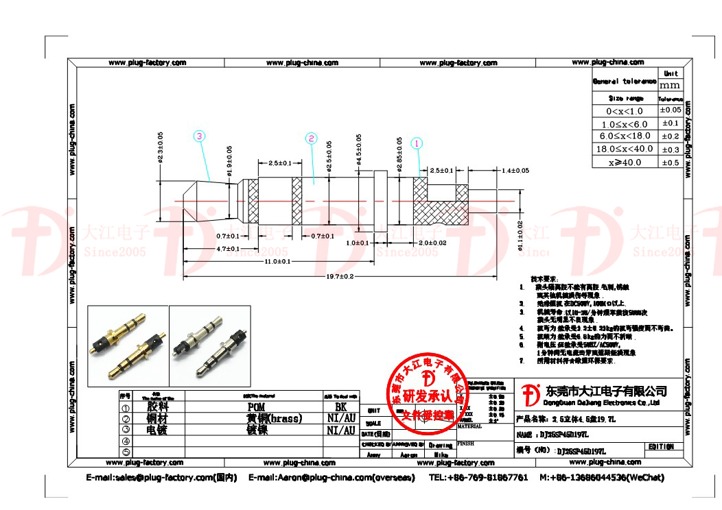 產品說明:耳機插頭-2.5立體4.5盤19.7L