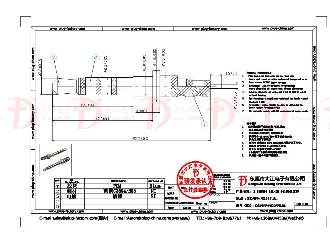 2.5四級4.5盤25.5L藍膠耳機插頭