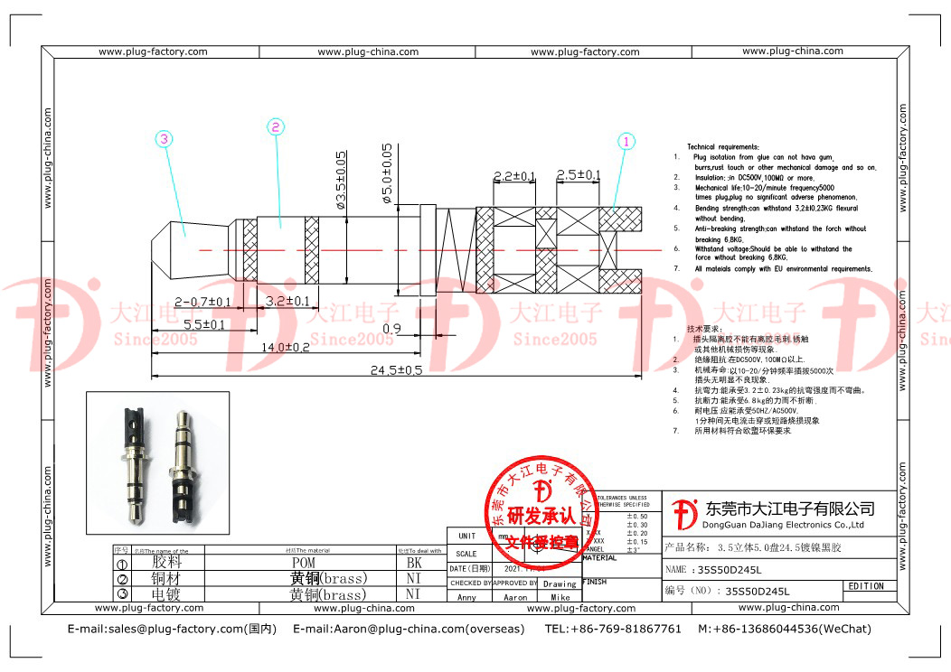 產(chǎn)品說明:3.5mm立體5.0盤24.5L鍍鎳黑膠 耳機插頭