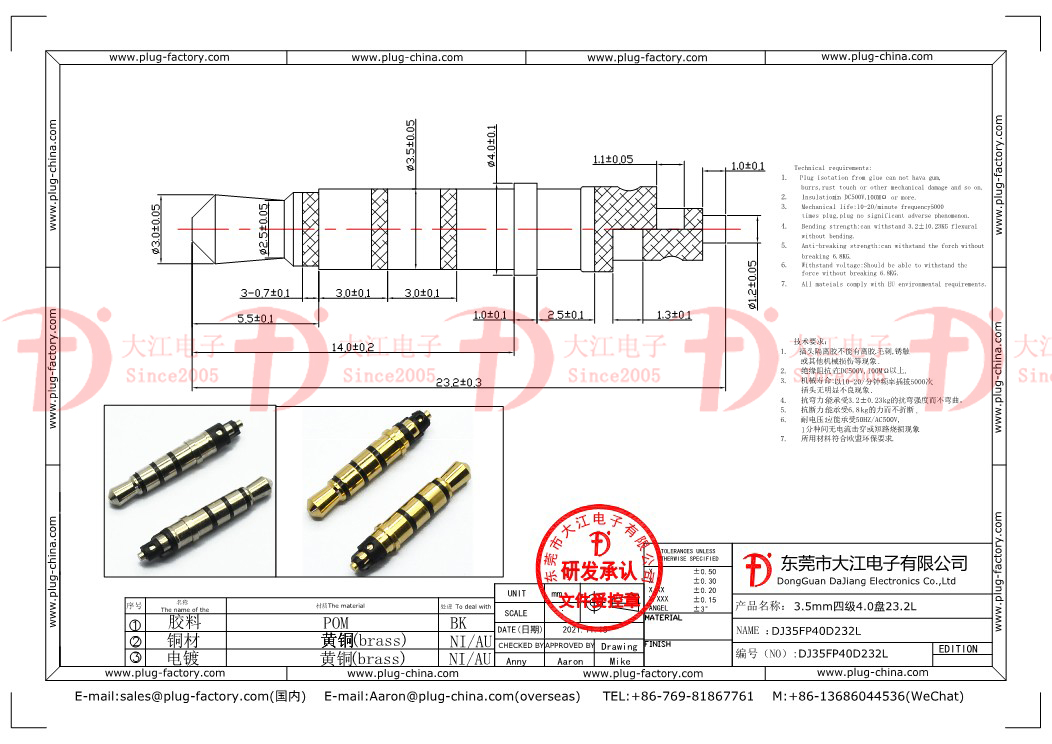 產(chǎn)品說(shuō)明:耳機(jī)插頭-3.5四級(jí)4.0盤(pán)23.2L