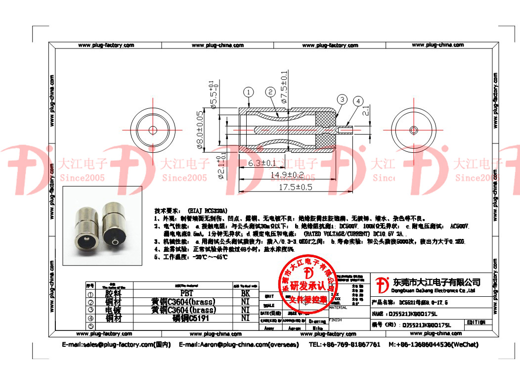 5521JK80DNI17.5LDC母座