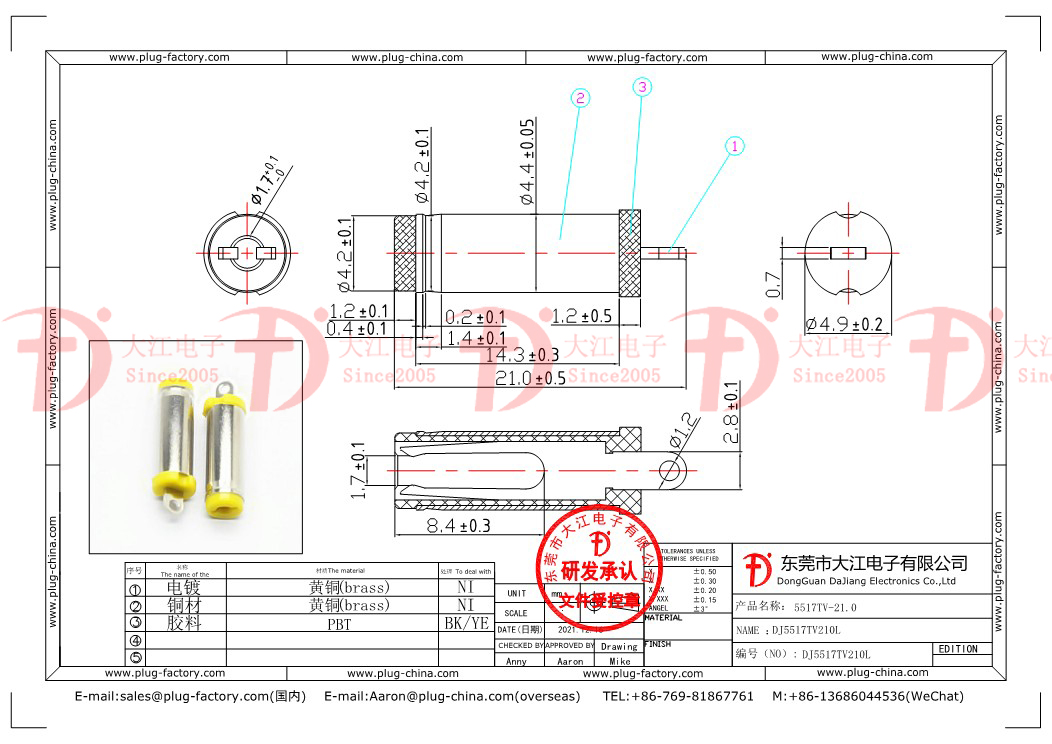 產品說明:音叉插頭-5517TV21黃膠