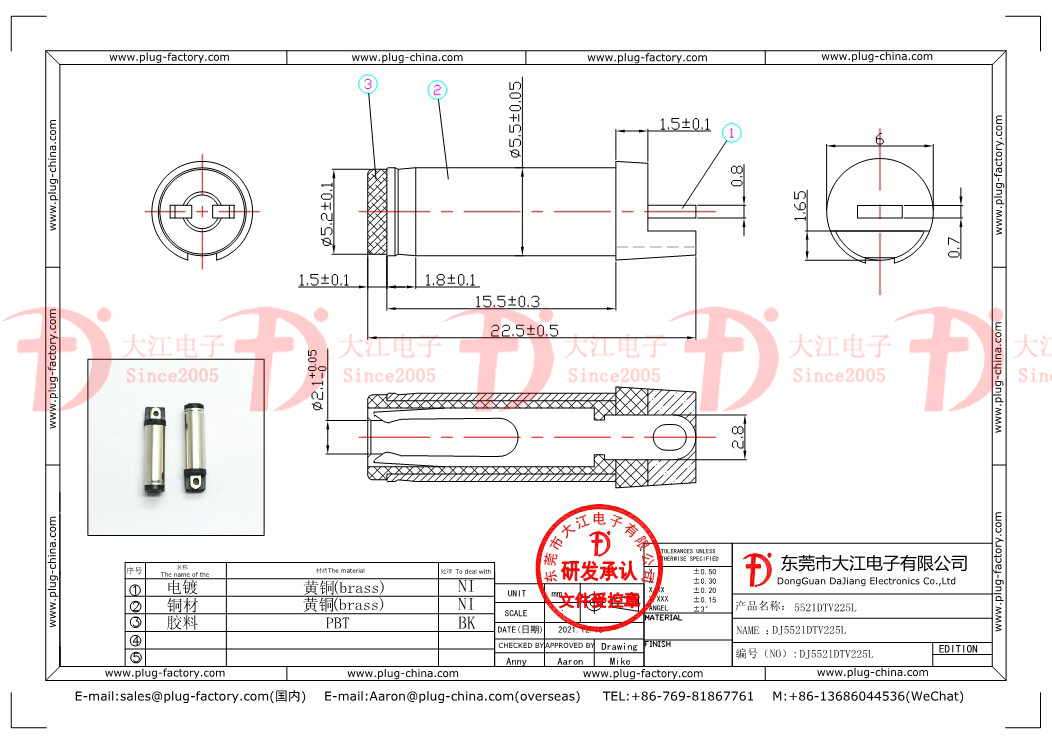 產品說明:音叉插頭-5521DTV22.5L