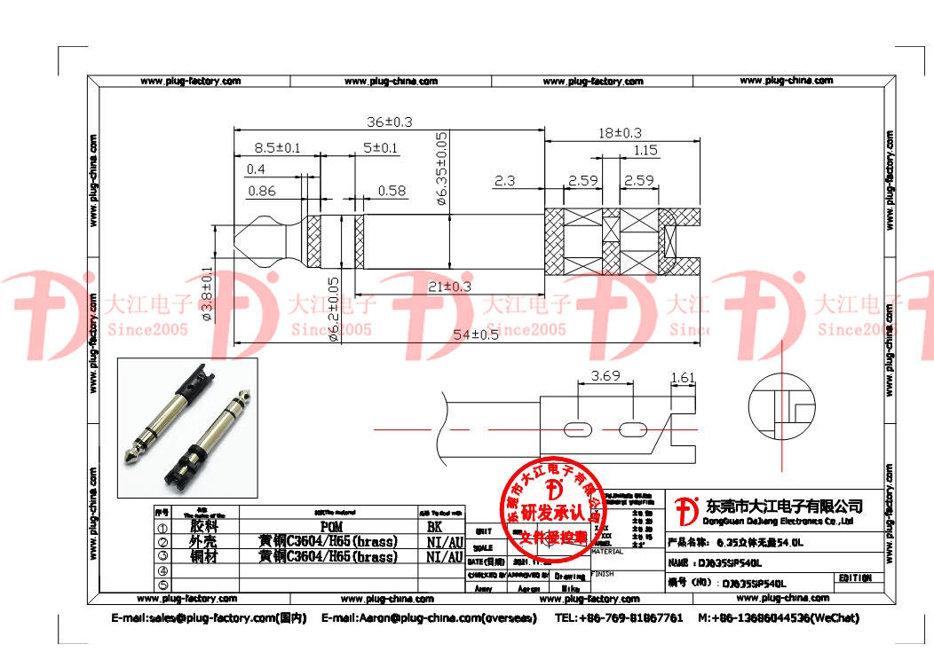 產品說明:音頻插頭6.3立體公頭54L保插針