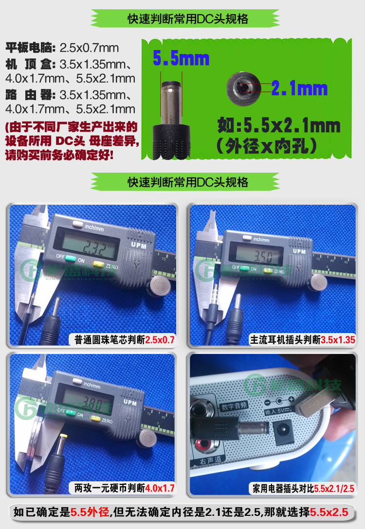 二、接下來,用圖示的方式,使用日常生活中常見的東西。可以快速判斷您所有的DC頭規格,以方便你購買適合的電源適配器/充電器。這里提供2種方法,哪種適合你?