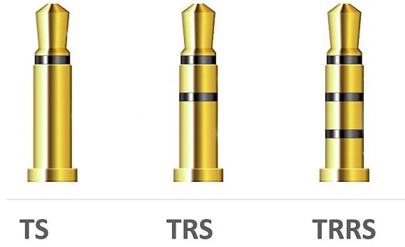 耳機插頭的導體接觸環中至少會包括一個Tip(尖端)和一個Sleeve(套筒)。大于兩段的,會多出相應數量的Ring(圓環)。所以也可以用環的數量去區分它們,分別會有TS/TRS/TRRS/TRRRS。