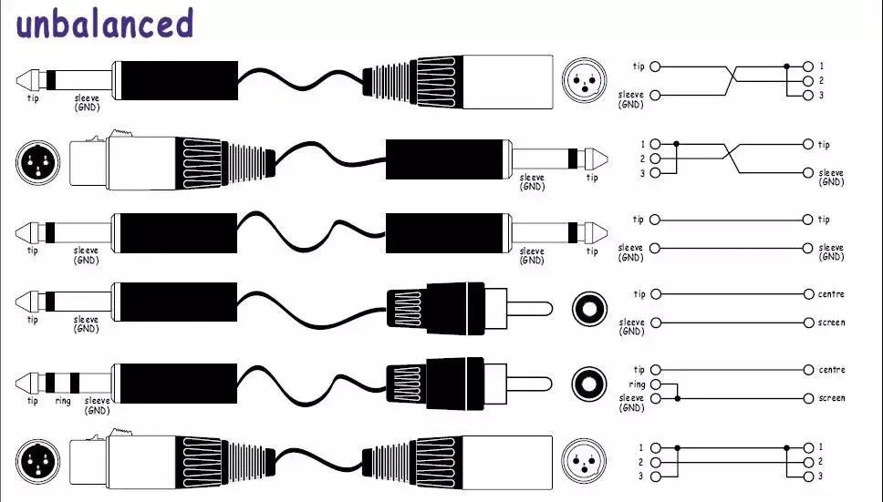 由于大部分用在擴聲工程上的音源設備,本身輸出端采用非平衡式輸出,比如蓮花式輸入插座或大二芯插座,所以非平衡式連接只適合在距離較近的情況下用于音源設備與調音臺之間的連接。