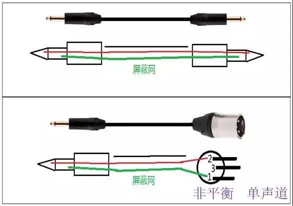 非平衡式連接和信號傳輸:采用兩端連接方式,信號線由內部的一根芯線及屏蔽層組成,音頻信號的傳輸由芯線和屏蔽層負責,芯線連接信號正極,而屏蔽層連接信號負極。用于非平衡式傳輸的接插件有蓮花插頭和大二芯插頭兩種。