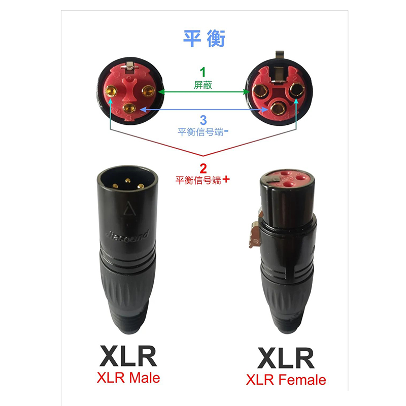 實現平衡傳輸,需要并列的兩根導線加一條屏蔽地來實現,即熱端(信號+)、冷端(信號-)、屏蔽地。因此,平衡輸入、輸出接頭,必須具有三個接線端,如XLR,6.35TRS等。