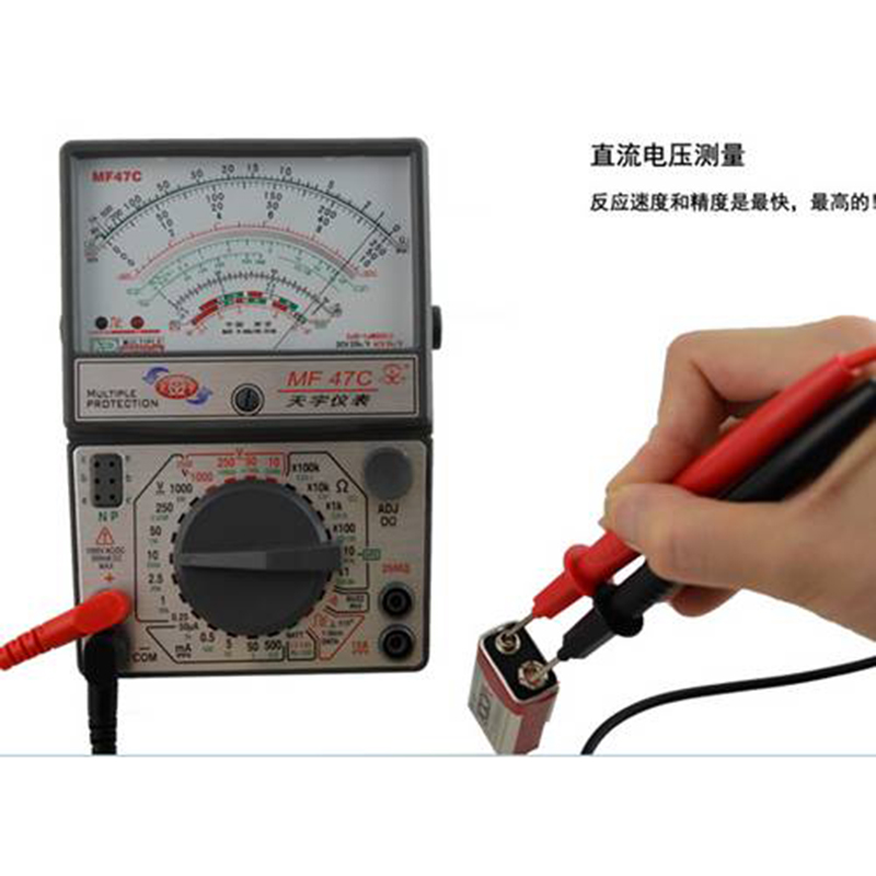將萬用表的一個轉(zhuǎn)換開關(guān)置于交、直流電壓擋,另一個轉(zhuǎn)換開關(guān)置于直流電壓的合適量程上,且表筆(紅表筆)接到高電位處,“-”表筆(黑表筆)接到低電位處,即讓電流從表筆流入,從“-”表筆流出。若表筆接反,表頭指針會反方向偏轉(zhuǎn),容易撞彎指針。