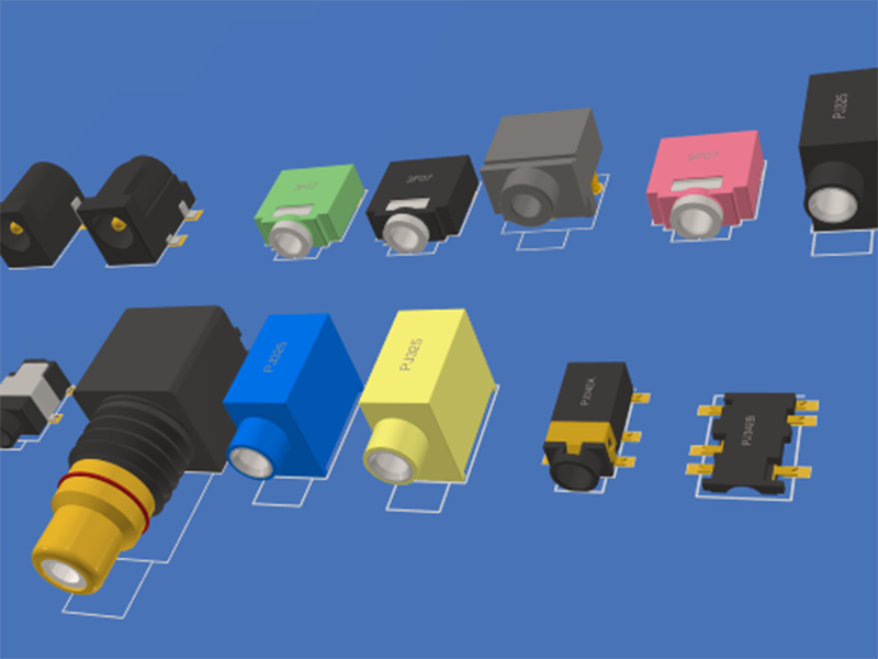 包含了我們平時常用的DC電源插座接口,PJ系列音頻插座接口,總共20種封裝及精美3D模型。完全能滿足日常設計使用。每個封裝都搭配了精美的3D模型哦。