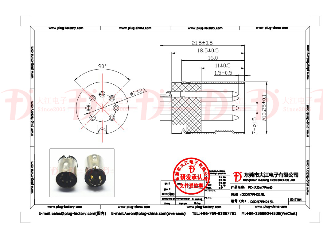 大Din 7P公頭 總長:21.5L 大Din插頭