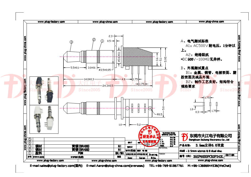 產(chǎn)品說明:3.5立體6.0雙盤PCB插針(白)