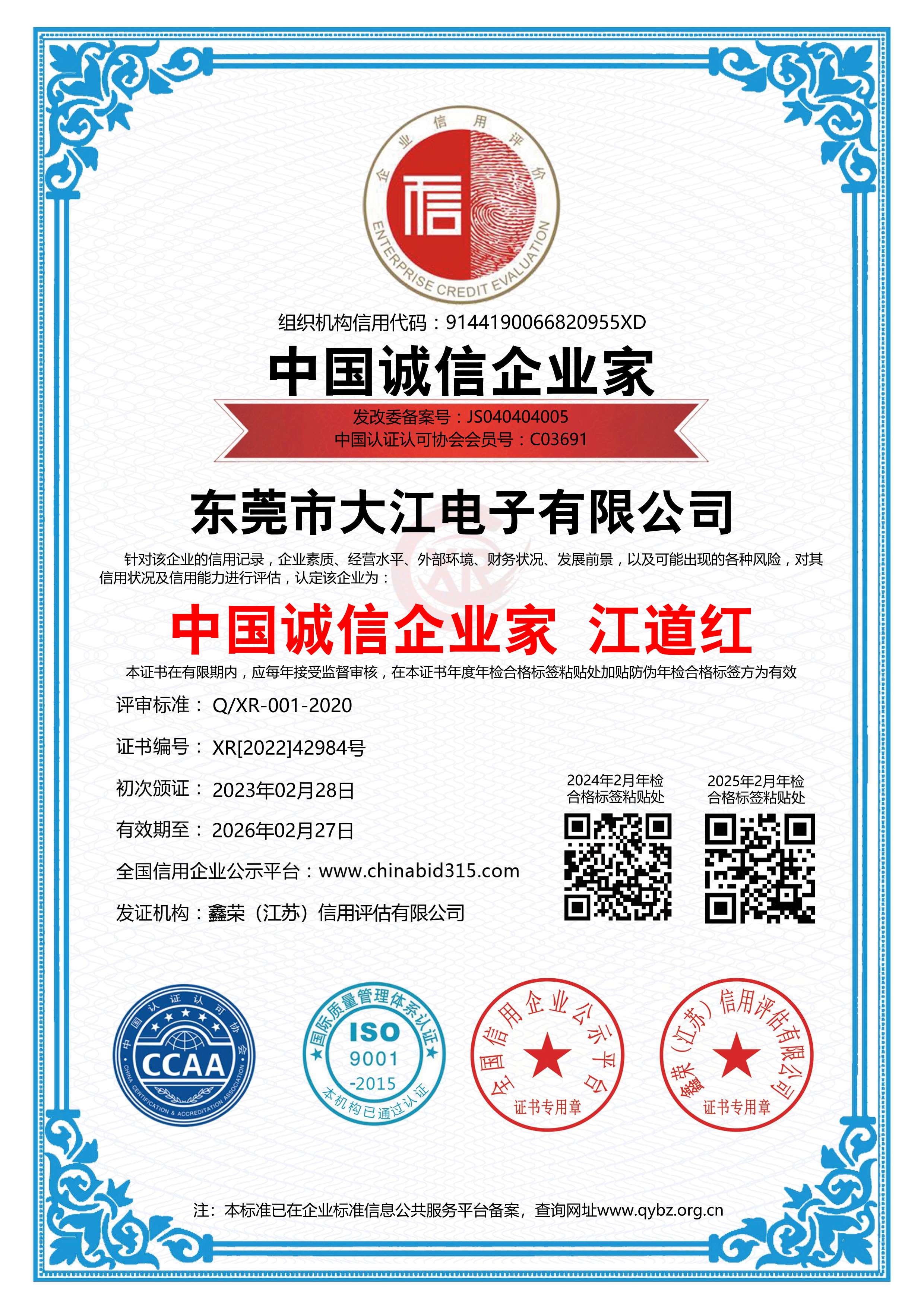 熱烈祝賀大江電子通過(guò)中國(guó)誠(chéng)信企業(yè)家認(rèn)證!
