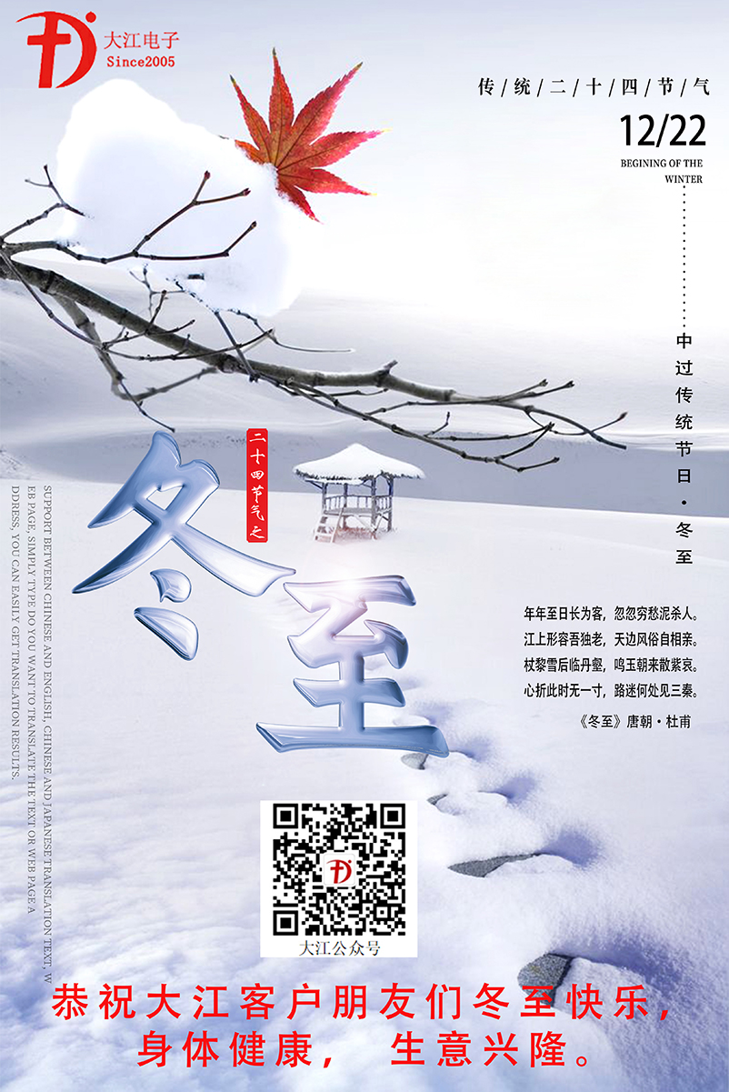 最后祝愿東莞市大江電子有限公司全體員工及全國客戶朋友們冬至快樂,身體健康,合家團圓,工作順利!