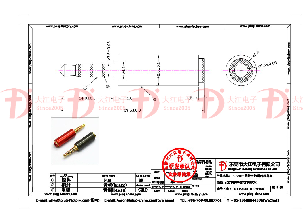 產品說明:轉換插頭 3.5mm四級公轉母烤漆外殼